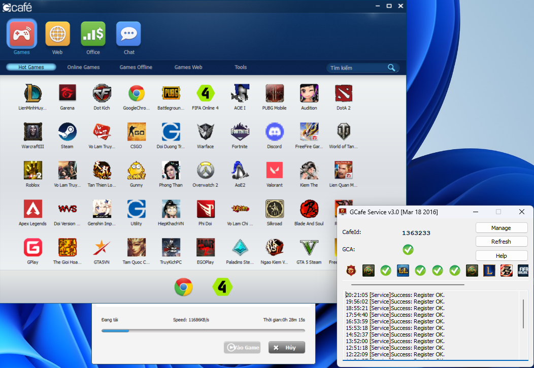 Phần mềm quản lý Games cho phòng máy, giúp Download các game mới và Update cho các Game 24/7 hoàn toàn tự động, Các chủ phòng máy hoàn toàn ko cần làm gì thêm mà vẫn có Game đầy đủ lúc nào củng sẵn sàng cho KH