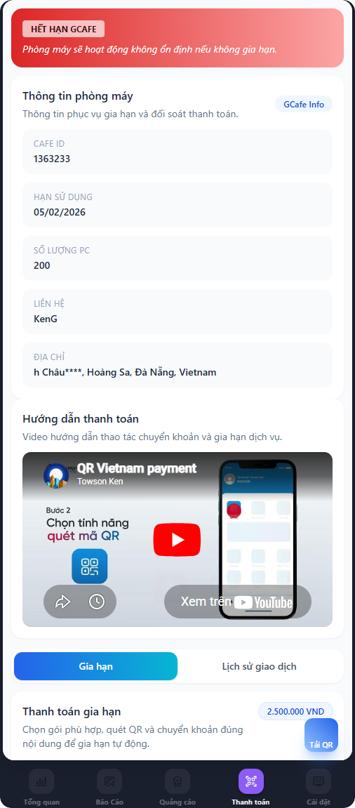 Kiểm tra Gcafé Update còn hạn sử dụng hay không.